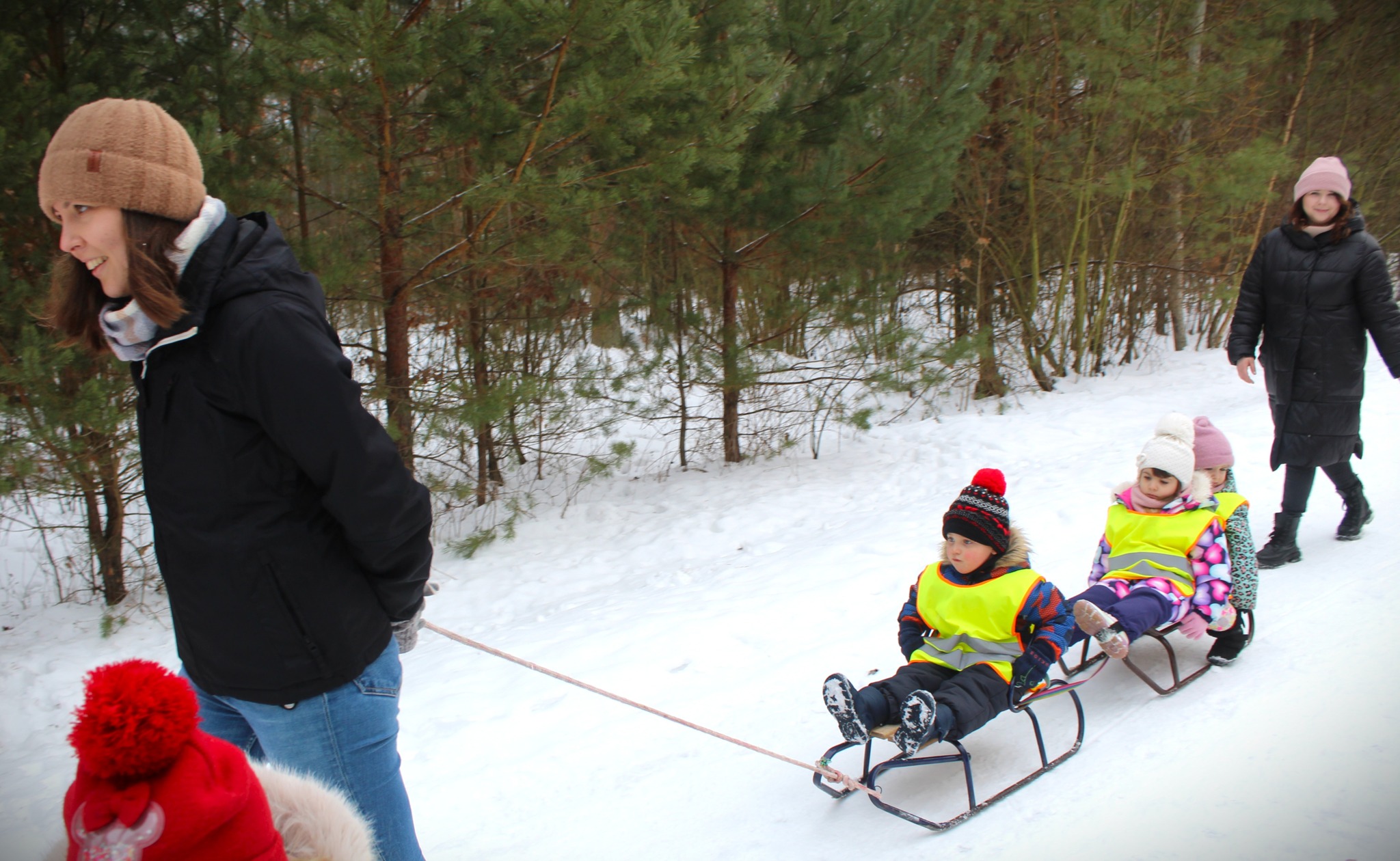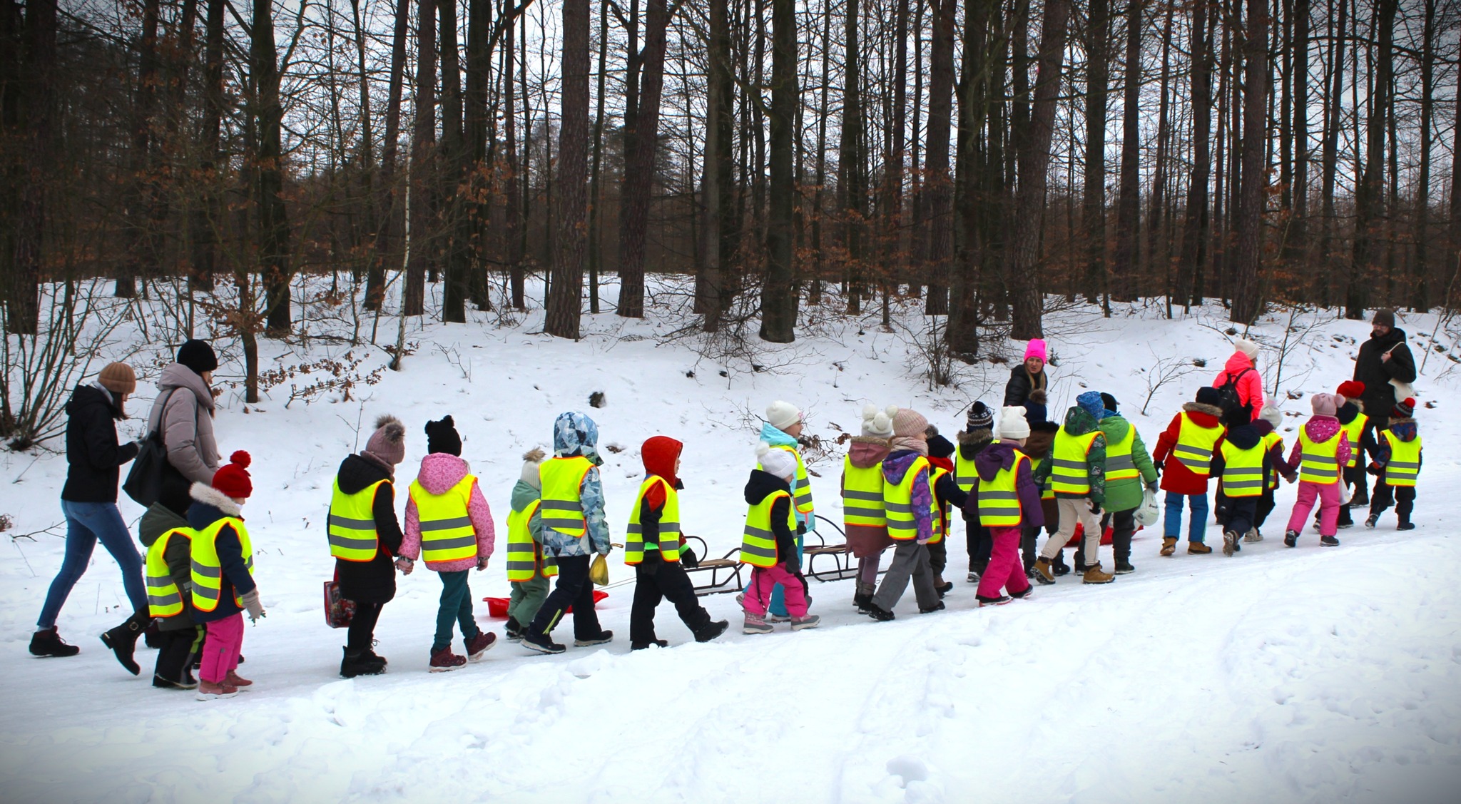 PIĘKNE OKOLICZNOŚCI PRZYRODY, WSPANIAŁE HUMORY I PIĘKNA POGODA - a ponad to - ODKRYWANIE NOWYCH WIADOMOŚCI - podczas spaceru ... a czasem jazdy saneczkami dzieci z DOMOWEGO PRZEDSZKOLA NR 2
