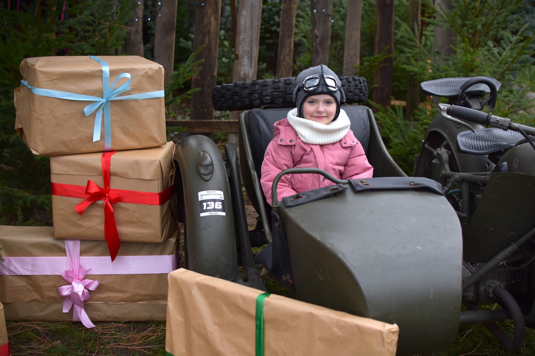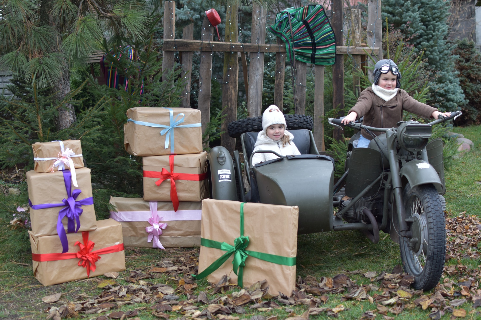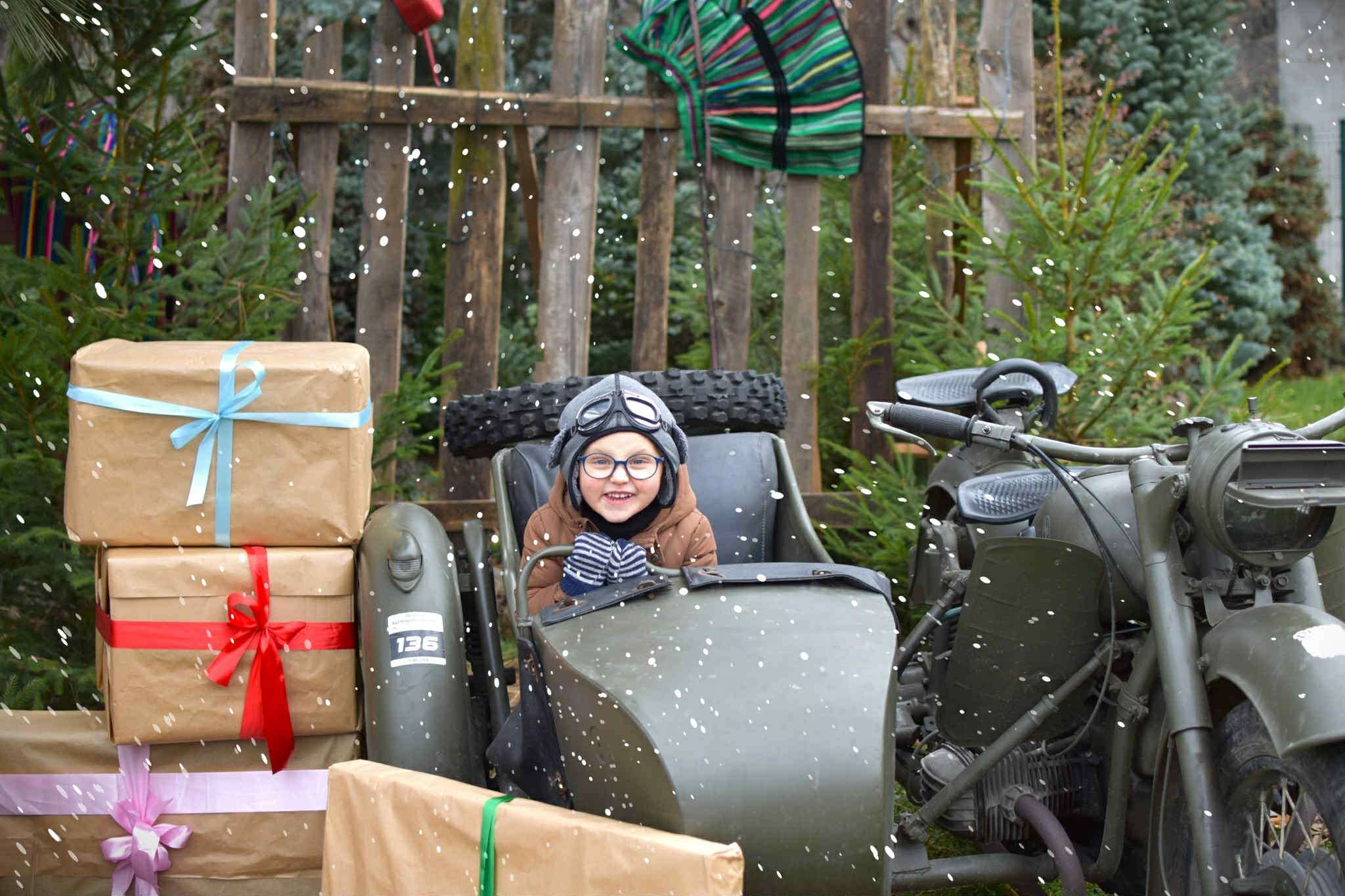 Dziękujemy również p. Bogdan Madej za wypożyczenie super, unikatowego sprzętu do naszego studia. Ten wspaniały motocykl z koszem, specjalnie skonstruowany drewniany płot z elementami ludowymi i światełkami czy ogromne stosy prezentów.... małymi kroczkami wprowadziły nas w magię świąt