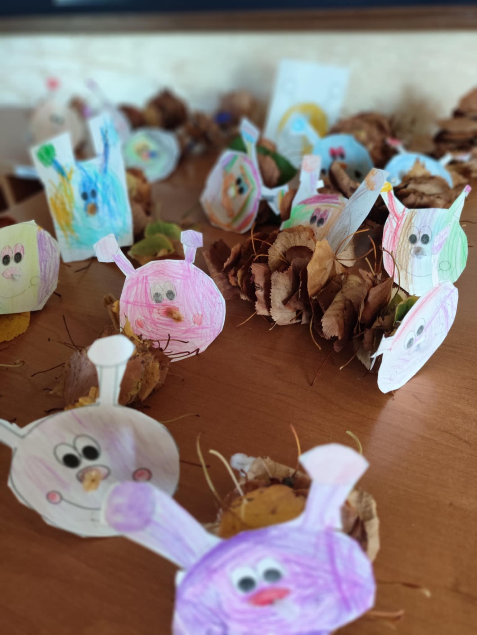 Przedszkolaki zaobserwowały także ostatnie oznaki lata tj. kwiaty na łące, które wykorzystały do swojej pracy plastycznej. Zwieńczeniem naszych poszukiwań jesieni stały się gąsienice wykonane przez przedszkolaki z liści zebranych podczas spaceru.